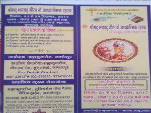 Events for December 24, 2017 Events Search and Views Navigation Show Events Search Events Search Day Of Search Event Views Navigation View As ListMonthDay « Previous Day Next Day » 3:00 pm 5 day program on Spiritual Secters of SRIMAD BHAGWAD GITA at Jugsalai December 24, 2017 @ 3:00 pm - December 28, 2017 @ 3:00 pm shiv mandir hall, jugsalai Jamshedpur, 831018 + Google Map Find out more » + Export Events